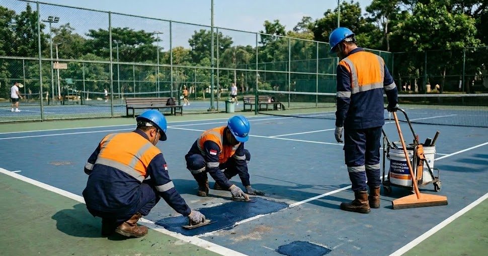 Perbaikan Retakan Lapangan Tenis penting untuk menjaga kualitas permukaan dan keamanan. Retakan muncul akibat cuaca, usia, atau struktur. Memahami jenis retakan membantu menentukan metode perbaikan yang tepat, mulai dari pengisian sederhana hingga pelapisan ulang total, memastikan lapangan kembali prima.